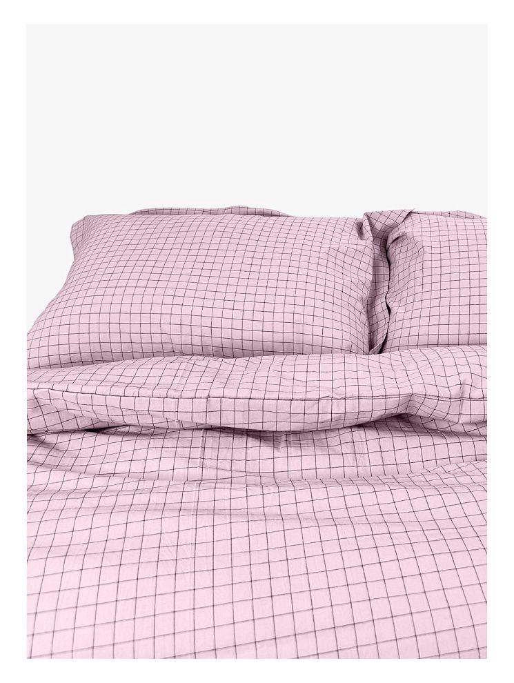 Комплект постельного белья LOFT Dark Grey Cell из вареного хлопка. Прекрасный вариант для любителей стиля casual. Ткань во время производства в буквальном смысле проходит обработку горячей водой с добавлением вулканической породы. Такое белье отлично дышит и испаряет влагу в теплую погоду, а мягкая поверхность создает ощущение уюта.
