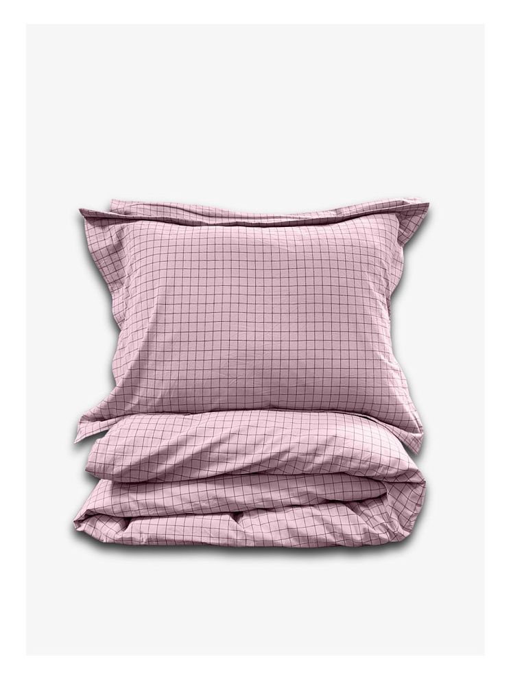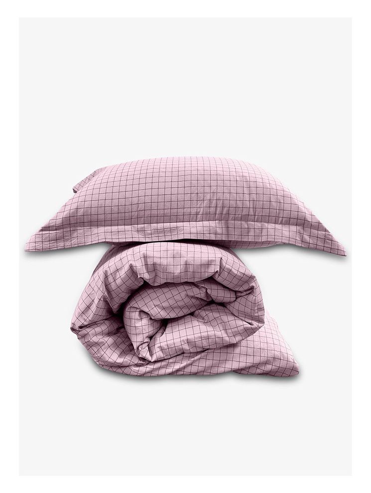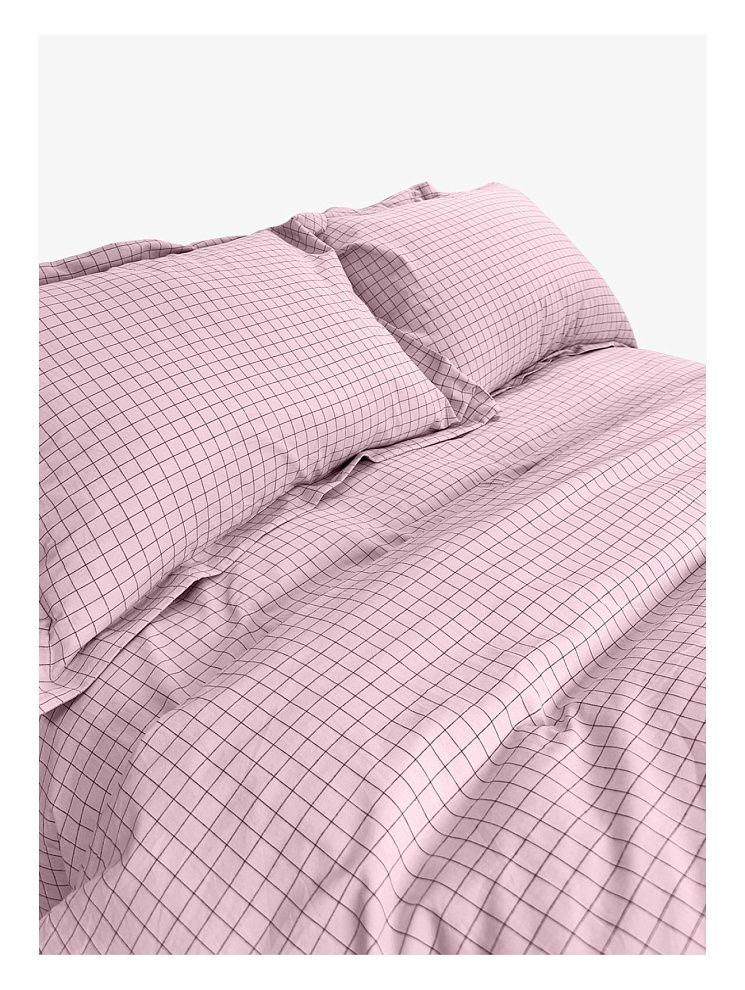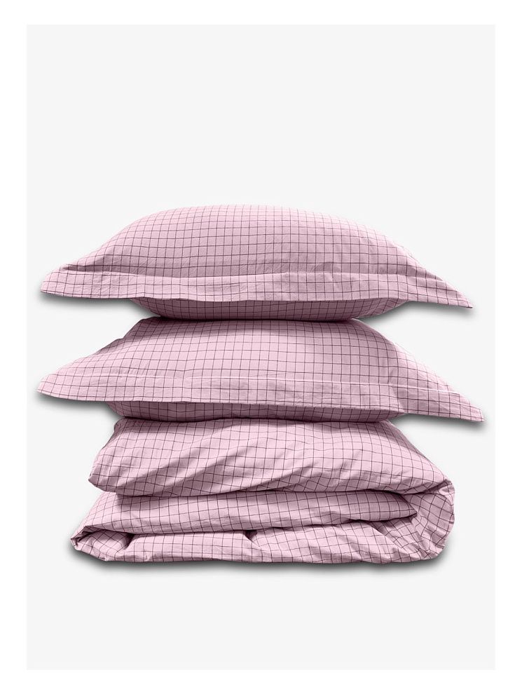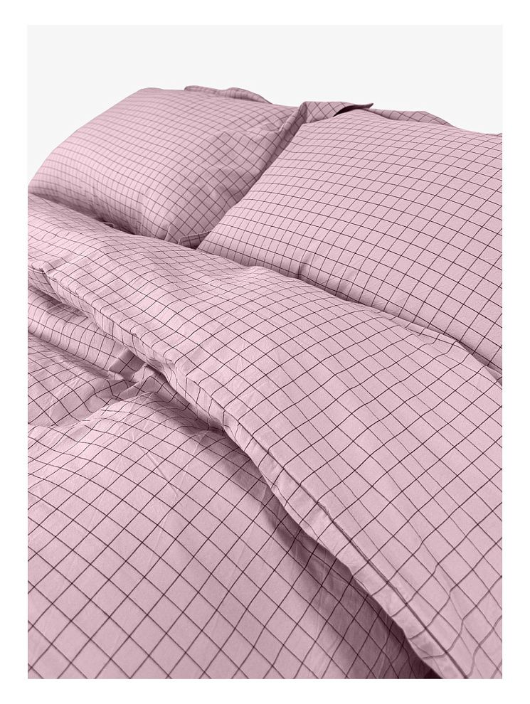 Семейный комплект постельного белья LOFT Pink Cell из вареного хлопка. Прекрасный вариант для любителей стиля casual. Ткань во время производства в буквальном смысле проходит обработку горячей водой с добавлением вулканической породы. Такое белье отлично дышит и испаряет влагу в теплую погоду, а мягкая поверхность создает ощущение уюта.