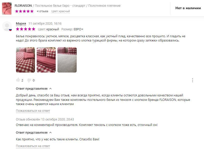 Заказала белье брусничного цвета комплект Семейный. Очень удобно, что для меня сделали увеличенную длину простыни и дополнительные наволочки. Я боялась что белье будет шершавым или не особо приятным, но оно оказалось очень приятным тактильно, гладким и шелковистым ( на наволочках это особенно важно). Мне очень понравилось качество и кастомизация этого белья, буду еще заказывать.